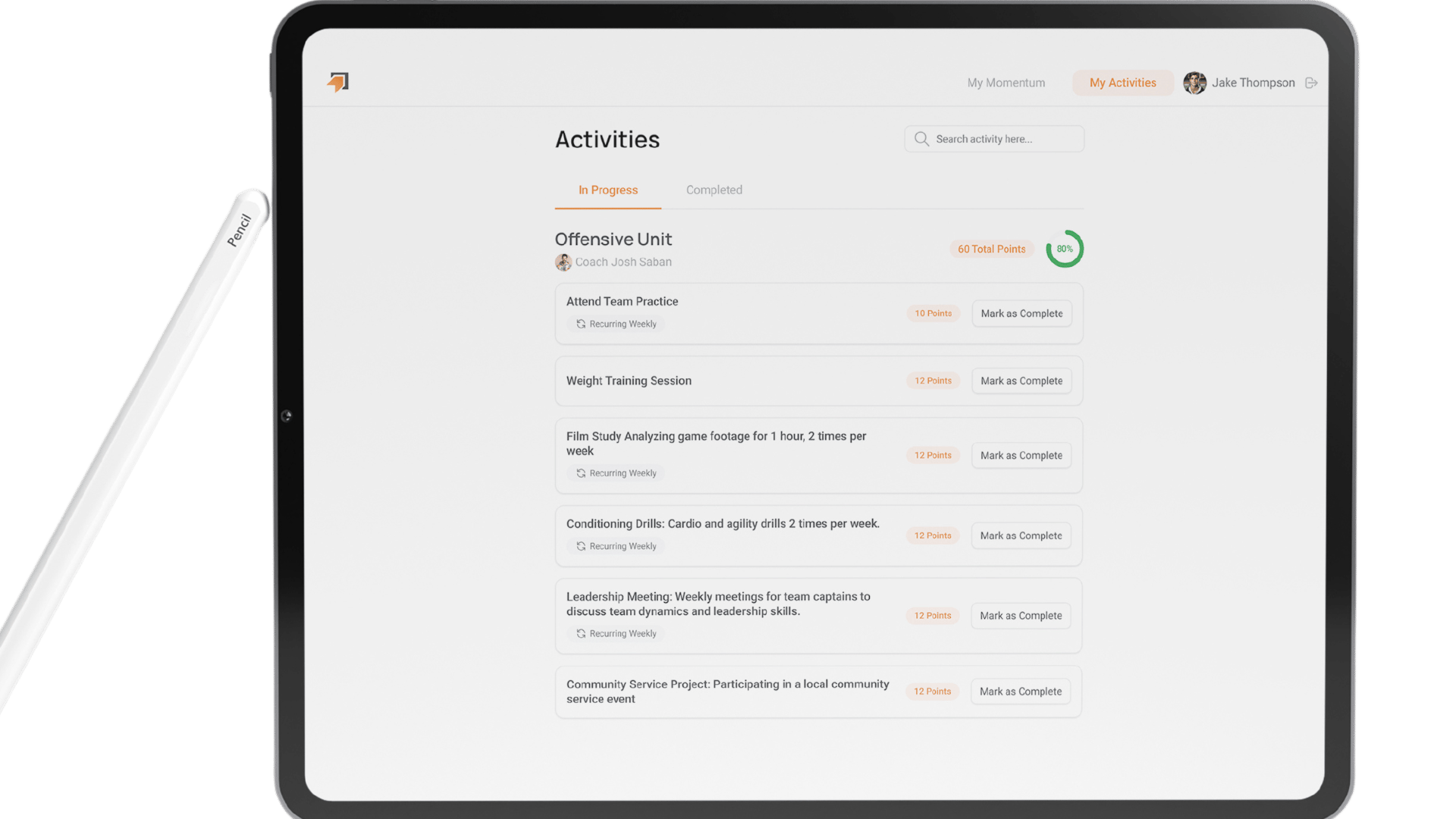 - Year-Round Engagement: Whether in-season or off, Momentum helps you maintain motivation and focus, keeping athletes committed to their goals.